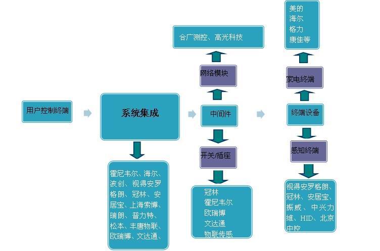 三是自動化企業(yè)。從智能控制的方式角度來說,智能家居主要是通過遙控、電腦、平板電腦、智能手機(jī)、人體感應(yīng)、溫濕度環(huán)境控制等多種智能控制方式來實(shí)現(xiàn),目前以羅克韋爾為代表的傳統(tǒng)自動化企業(yè),欲通過其在樓宇自動化控制方面的技術(shù)優(yōu)勢向家居自動化領(lǐng)域邁進(jìn)。而自動識別廠商摩托霍尼韋爾公司通過識別產(chǎn)品滲透到智能家居市場中,進(jìn)而布局智能家居未來巨大的市場。 |
